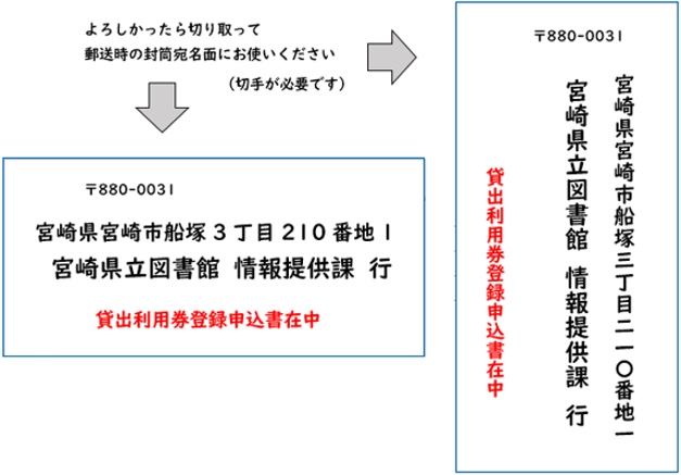 宮崎県立図書館に届きましたら、貸出利用券を発行し、③の封筒で送り返します。