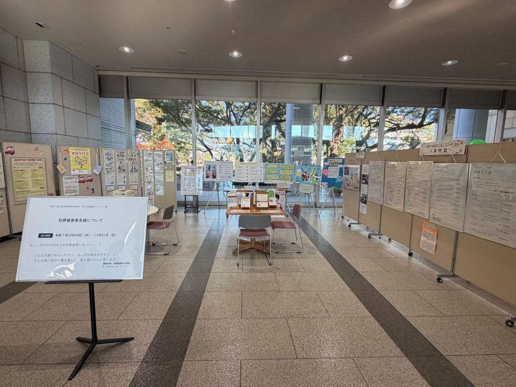 県立図書館では、現在1階ギャラリーにて、児童福祉と犯罪被害者支援に関する展示を行っています。 この機会にぜひご覧ください。